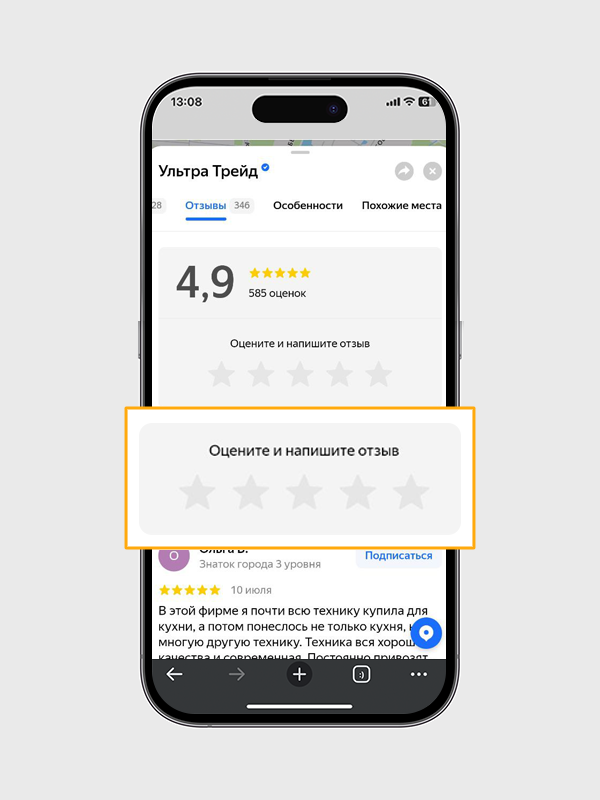 - Отсканируйте QR-код или перейдите по ссылке в карточку компании и оставьте отзыв, указав номер последнего заказа.