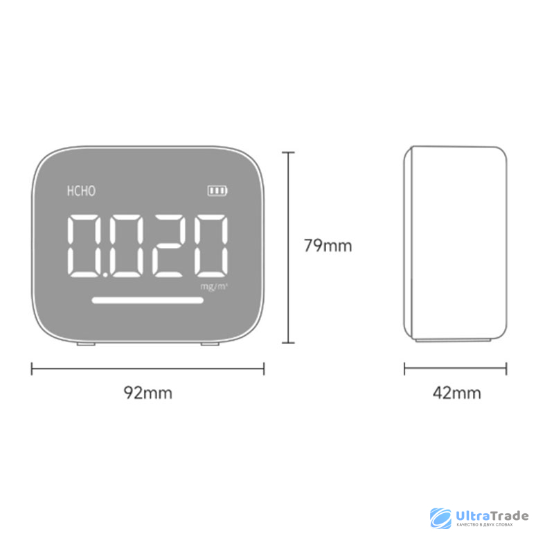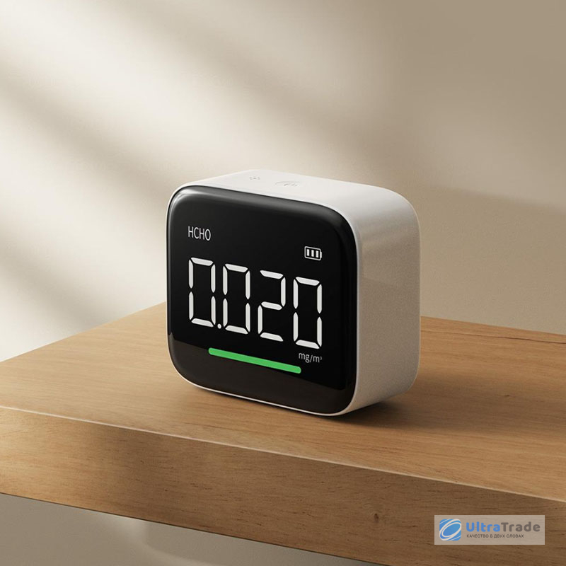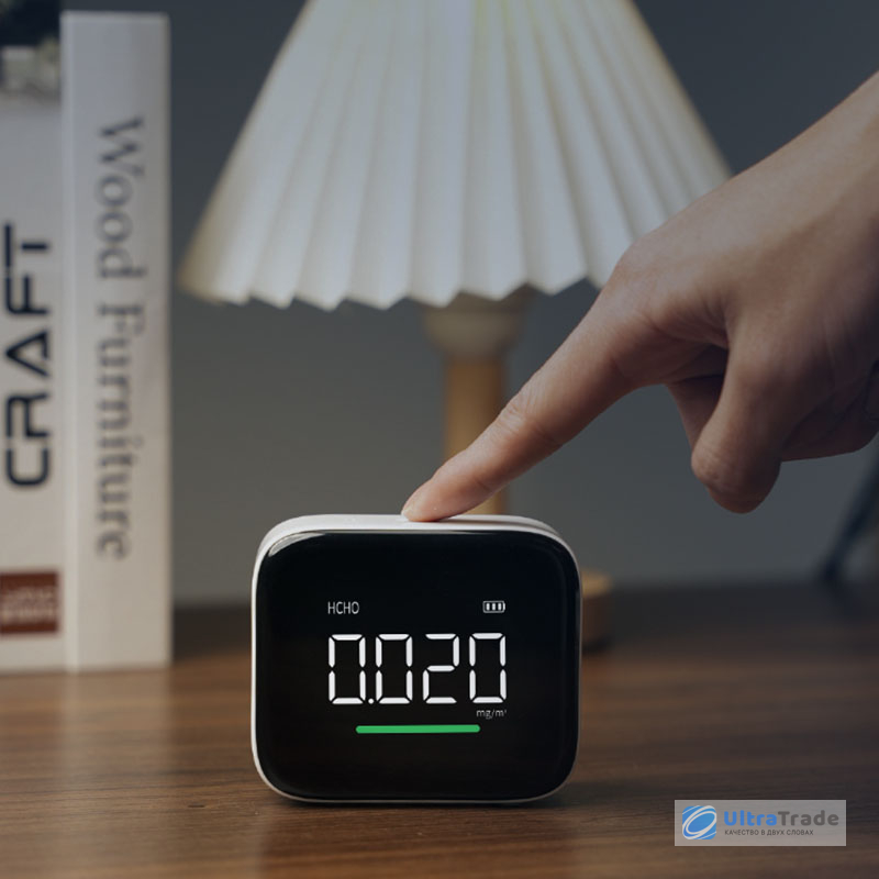 Анализатор одновременно отслеживает формальдегид, температуру и влажность. Удобный цифровой дисплей показывает текущие параметры и время. Простое управление одной кнопкой позволяет мгновенно переключаться между режимами.