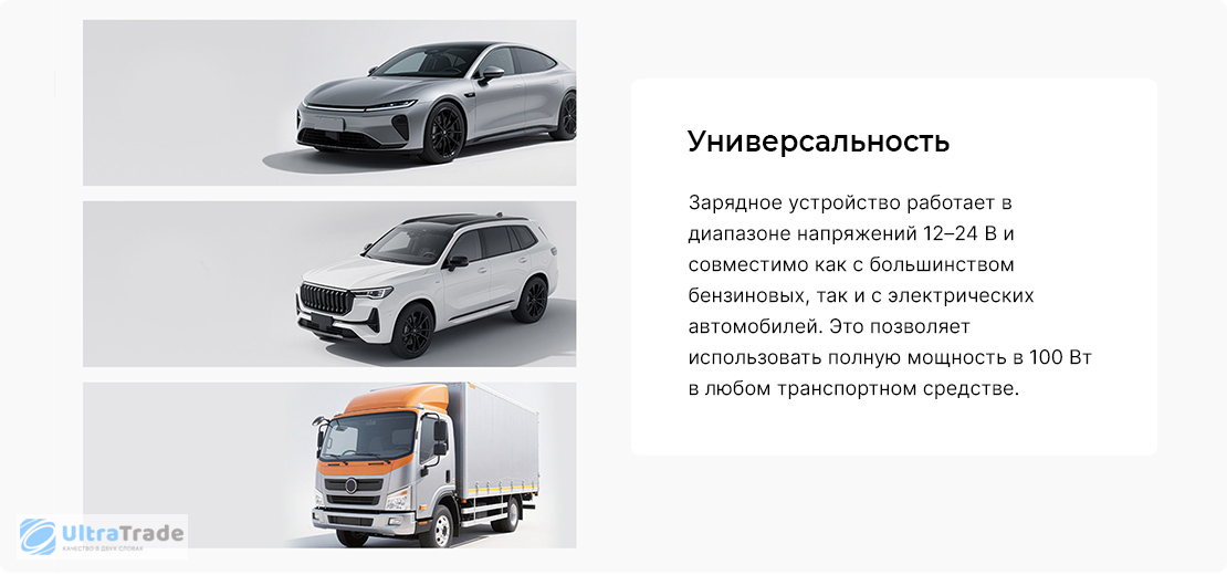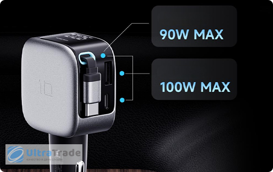 Многопортовый дизайн Модель оснащена тремя портами — двумя Type-C и одним USB-A (2C1A). Эта конфигурация позволяет одновременно и быстро заряжать несколько гаджетов в автомобиле. Вы можете гибко распределять общую мощность до 100 Вт между портами. ![]() |
