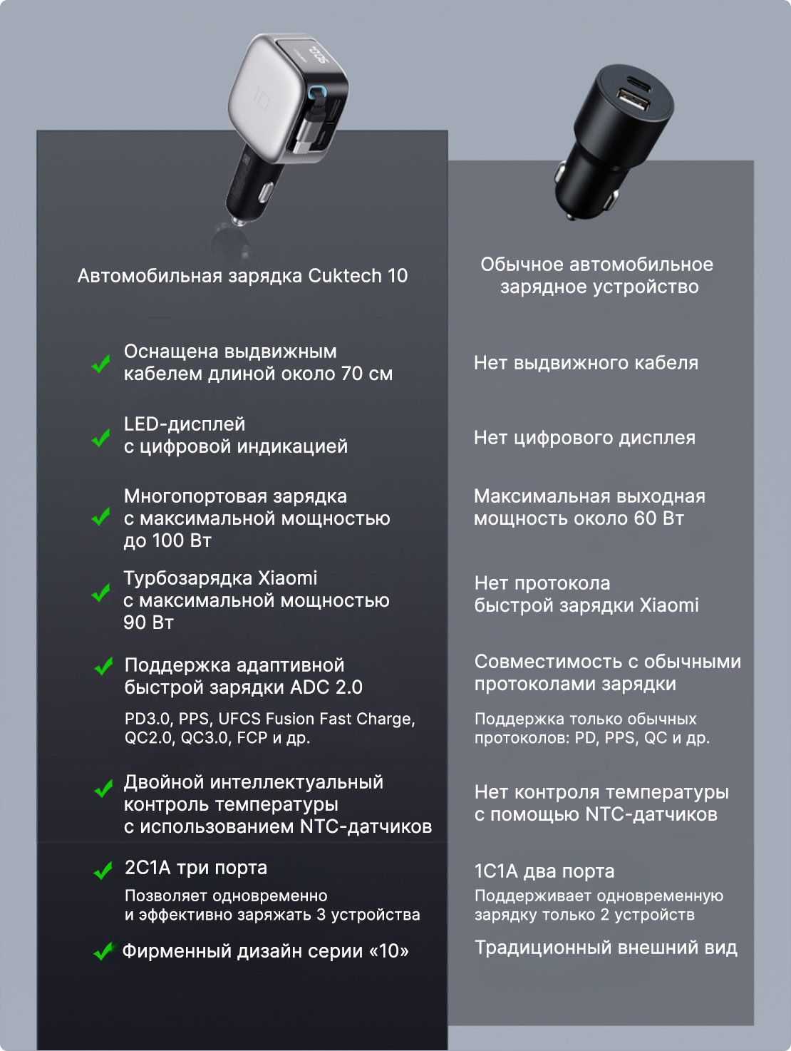 Автомобильное зарядное устройство Xiaomi CUKTECH Cool State Branch No. 10 Super Car Charger 100W MAX (CC903P)