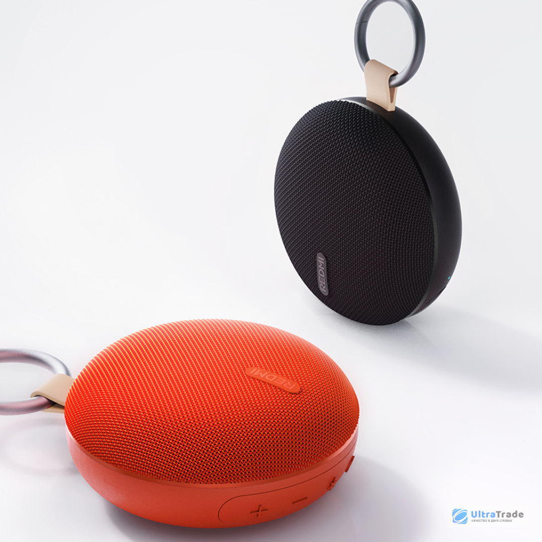 Колонка сочетает стильный дизайн с практичностью. Контрастные цвета и глянцевый пояс делают её заметной, а мягкая сетчатая отделка корпуса обеспечивает удобный хват. Противоскользящее основание гарантирует устойчивость на любой поверхности.