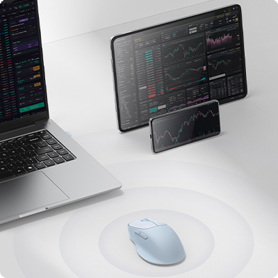 Мышь поддерживает одновременное подключение по двум протоколам: 2.4 ГГц и Bluetooth 5.0. Она запоминает до трёх устройств — ноутбука, планшета или ПК — и позволяет быстро переключаться между ними одной кнопкой.