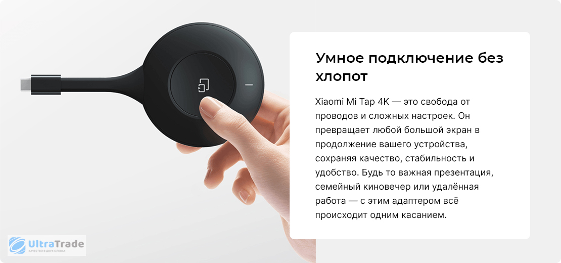 Умное подключение без настроек Mi Tap не требует Wi-Fi, драйверов или сложной настройки — просто подключите приёмник к телевизору или проектору через HDMI, а передатчик вставьте в порт Type-C вашего устройства. Система автоматически создаёт защищённую сеть и начинает передачу. К одному приёмнику можно подключить несколько передатчиков — идеально для совещаний или семейного просмотра. Лёгкое касание переключает экран между устройствами без переподключения кабелей. Полнофункциональный Type-C поддерживает одновременно передачу видео и зарядку PD, чтобы ваш гаджет не разрядился во время использования. |