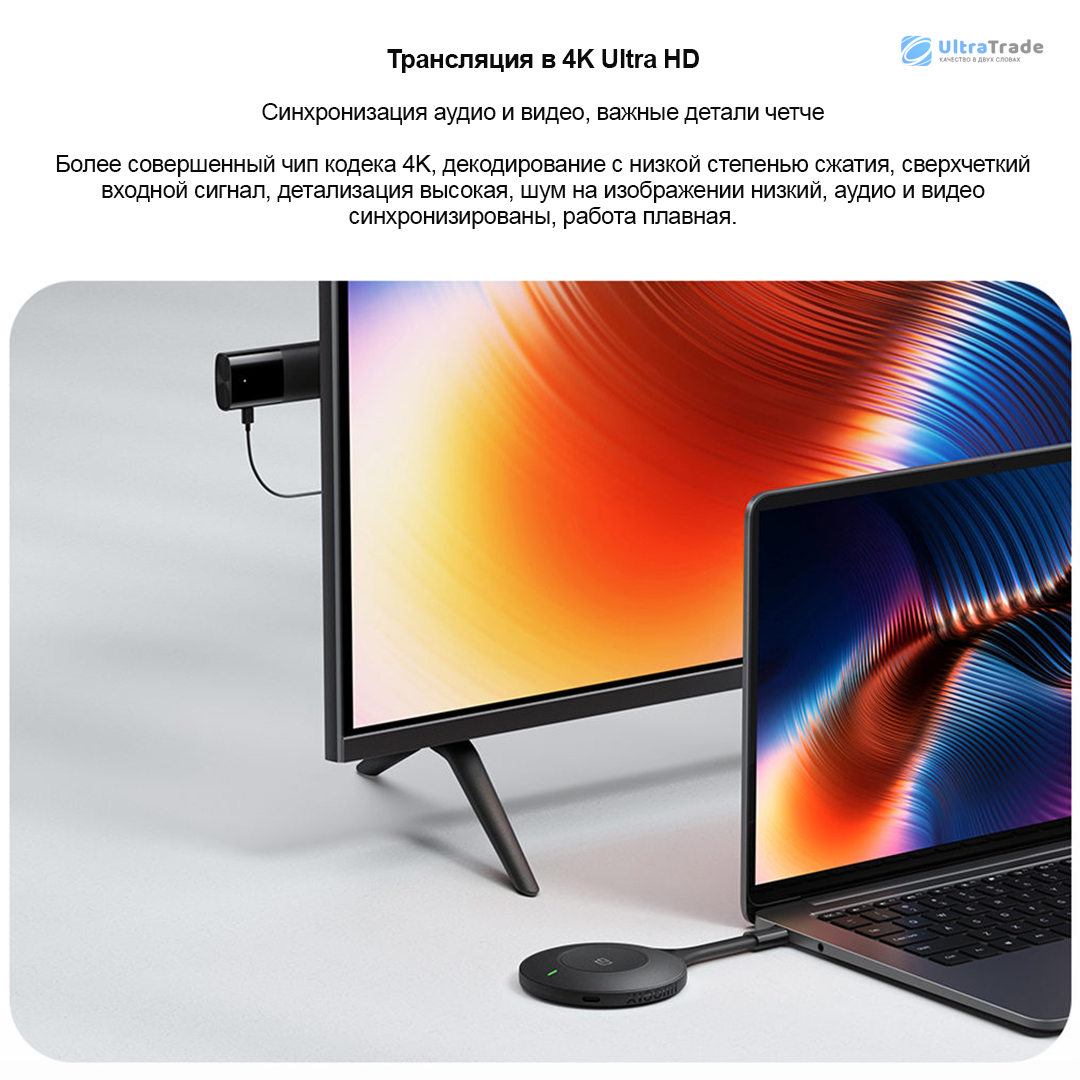 4K-качество без компромиссов Адаптер передаёт изображение в настоящем 4K Ultra HD с минимальным сжатием и полной синхронизацией звука и видео. Встроенный чип кодека обеспечивает чёткую детализацию, низкий уровень шума и плавную работу — будь то презентация, фильм или документ. Протокол передачи в диапазоне 5 ГГц создаёт стабильное соединение «точка-точка», сравнимое по надёжности с проводным подключением. Даже при длительной трансляции не возникает задержек, зависаний или мерцания экрана. |