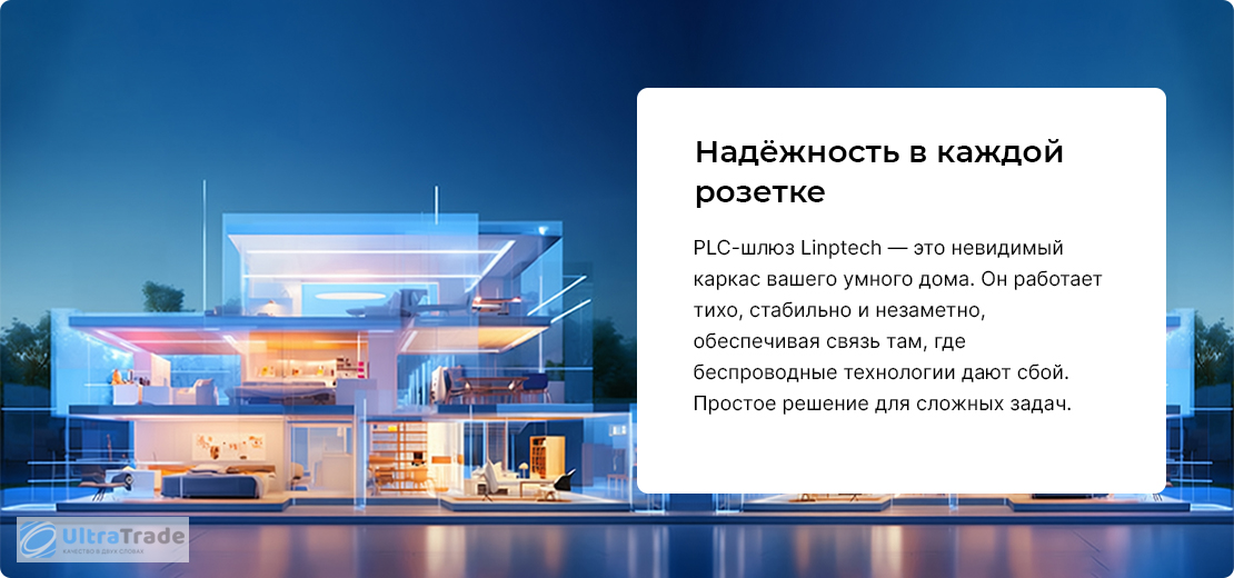 Шлюз использует технологию Powerline Communication (PLC) — данные передаются по существующей электросети. Это даёт ключевые преимущества: