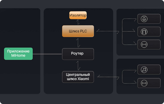 Устройства, подключённые через PLC-шлюз, отображаются в приложении MiHome как обычные умные устройства. Вы можете управлять ими удалённо, создавать автоматизации и сценарии вместе с беспроводными гаджетами — всё работает как единое целое.