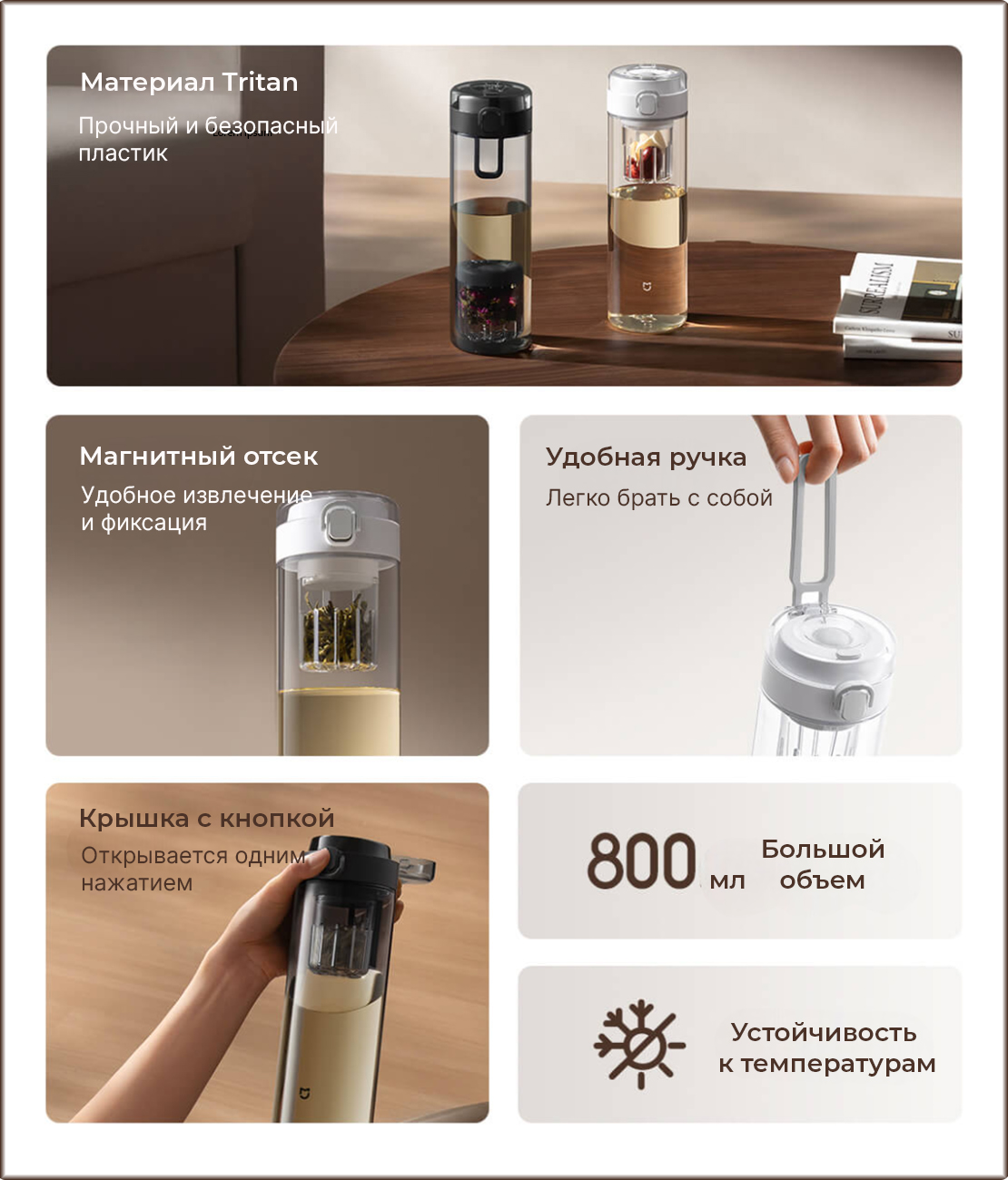 Бутылка для заваривания напитков Xiaomi Mijia Magnetic Tea Warehouse Cup Black (MJTRB02PL)