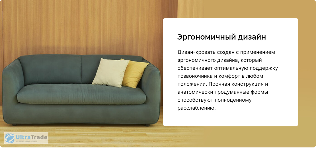 Днём диван служит уютным уголком для отдыха, приёма гостей или чтения любимой книги. С наступлением вечера он за считанные секунды превращается в полноценную и просторную кровать.