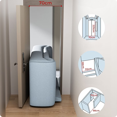 Продуманная логистика Диван адаптирован для сложных условий доставки: он может быть внесён через проёмы шириной 70 см — включая лифты (70 × 225 см), узкие лестницы (70 × 98 см) и повороты в прихожих. ![]() |