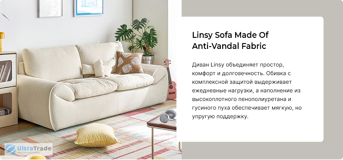 Диван на 2 места Xiaomi Linsy Sofa Made Of Anti-Vandal Fabric 2520 mm White (BS692-A)