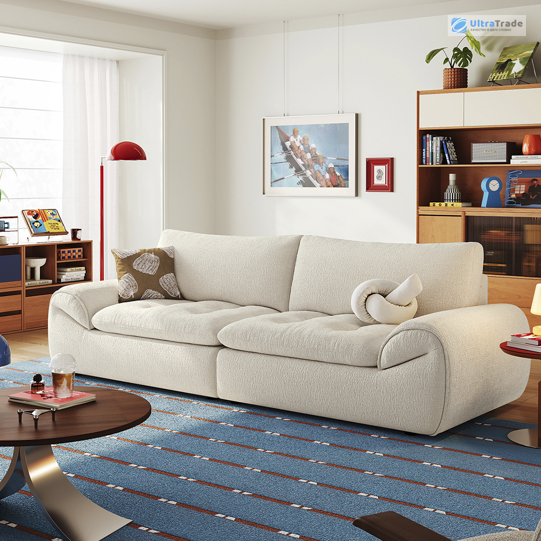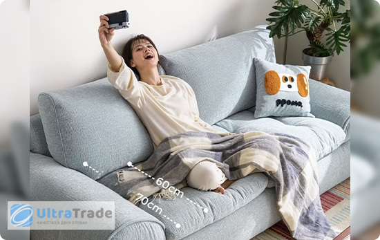 Высота спинки Высота спинки составляет 51 см — этого достаточно для комфортной поддержки шеи. Толщина подушек — 23 см, они мягкие и объемные, создавая ощущение погружения в облако. Увеличенная высота спинки обеспечивает дополнительный комфорт для головы и шеи. ![]() |