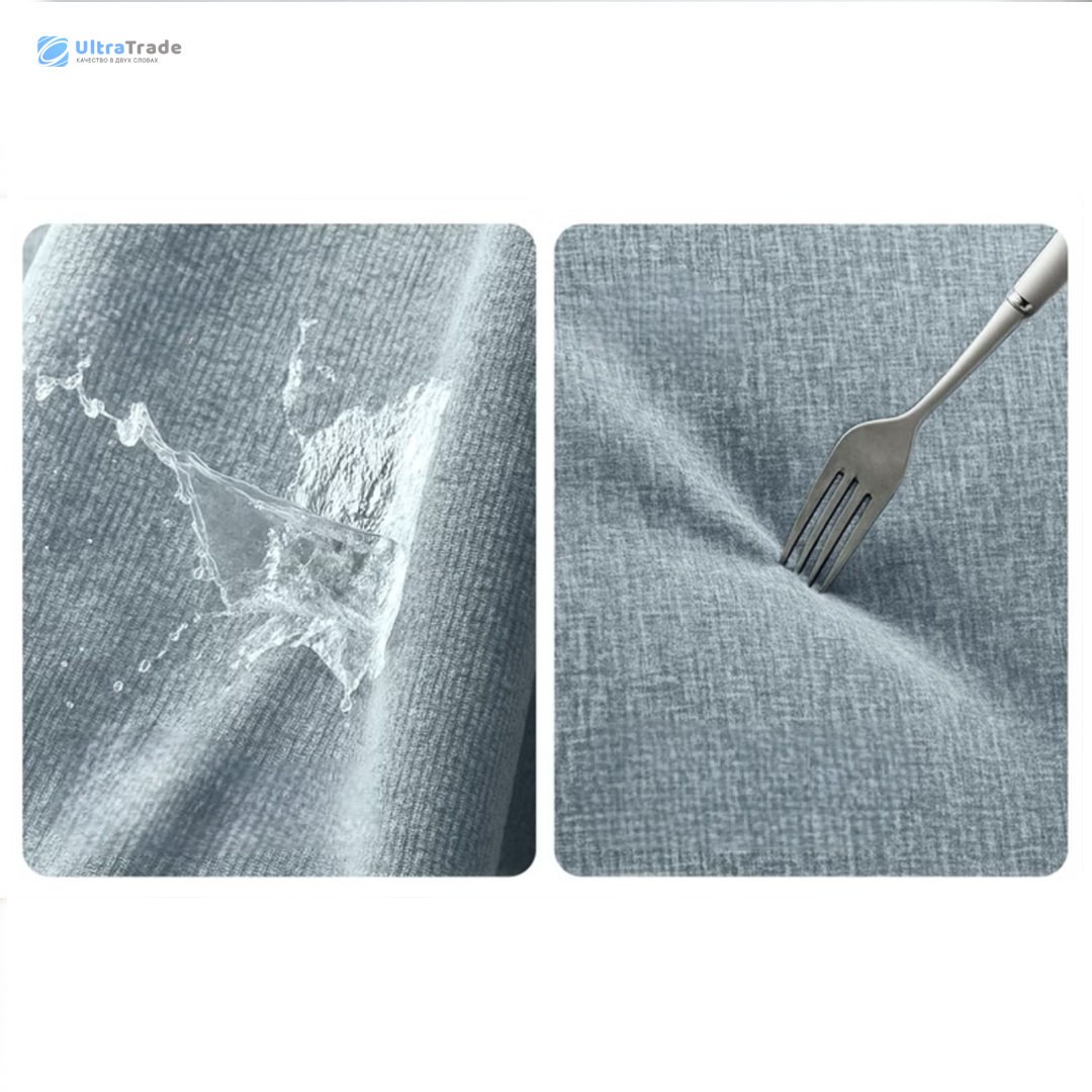 Обивка выполнена из ткани класса А+ с 8 видами защиты. Антибактериальная эффективность превышает 99% — ткань подавляет четыре распространенных вида бактерий. Материал обладает 3-м уровнем водостойкости: жидкость не впитывается, а скатывается с поверхности. По прочности ткань выдерживает до 68 000 циклов истирания и имеет 5-й уровень стойкости к образованию катышков.