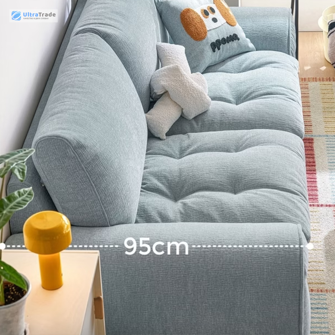 Несмотря на небольшие габариты, диван обеспечивает высокий уровень комфорта. Глубина сиденья составляет 60 см — этого достаточно, чтобы сидеть с удобством. Если убрать подушки, глубина увеличивается до 70 см, что позволяет расположиться с комфортом полулежа