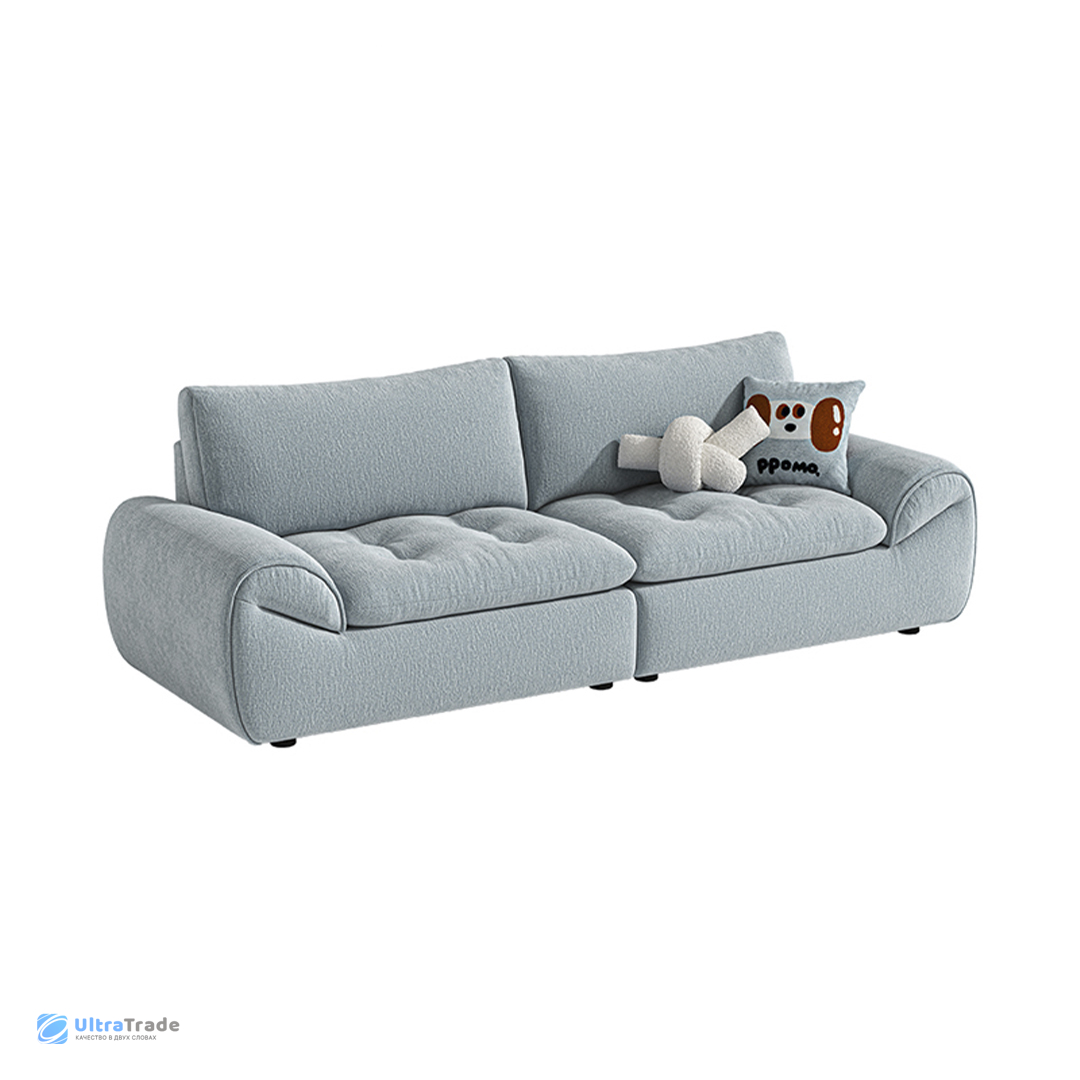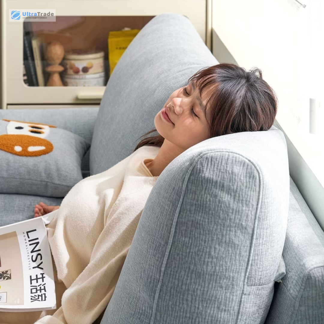 Высота спинки составляет 51 см — этого достаточно для комфортной поддержки шеи. Толщина подушек — 23 см, они мягкие и объемные, создавая ощущение погружения в облако. Увеличенная высота спинки обеспечивает дополнительный комфорт для головы и шеи.