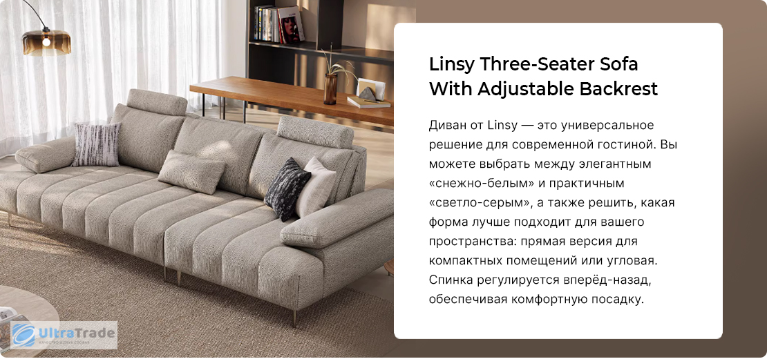 Диван на 3 места с регулируемой спинкой Xiaomi Linsy Three-Seater Sofa With Adjustable Backrest 2850 mm Gray (BS803-A)