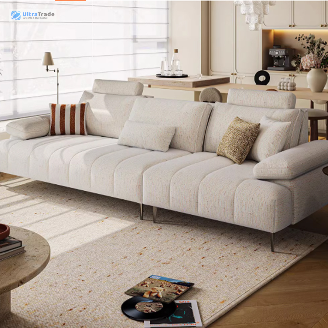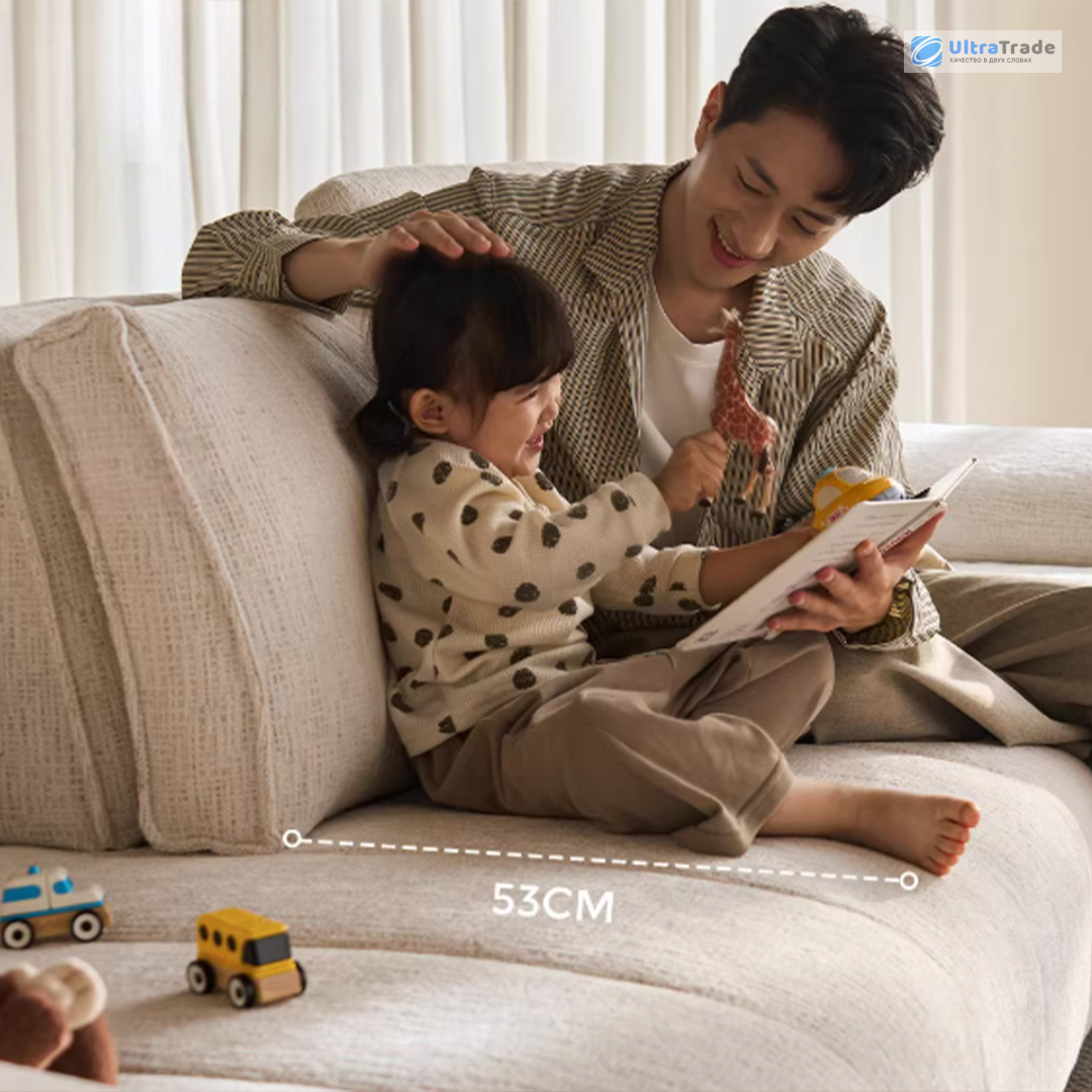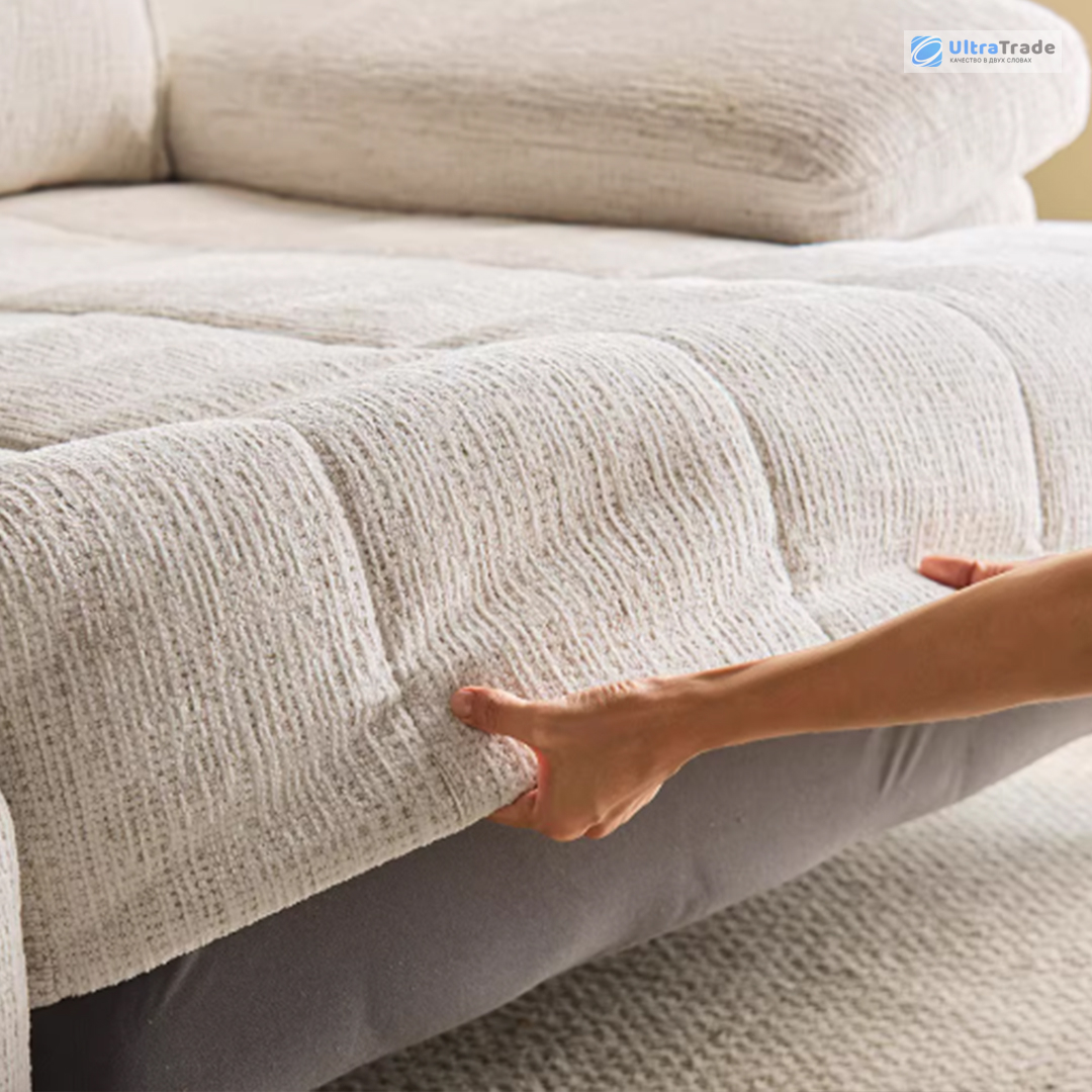 Диван обеспечивает комфорт за счёт разделения на зоны поддержки: сиденье поддерживает, подголовник обволакивает голову, а спинка остаётся мягкой, но упругой. Конструкция не слишком мягкая — она обеспечивает эластичную поддержку, благодаря чему при длительном сидении не устаёшь и не проваливаешься вглубь.