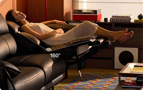 Регулировка наклона Диван поддерживает несколько углов наклона: 110°, 130°, 145° и 160°, что позволяет подобрать удобное положение для любых занятий — от чтения до полного расслабления. Управление осуществляется через две скрытые кнопки на боковой стороне. Они встроены в углубление, что сохраняет эстетичный внешний вид и предотвращает случайное нажатие детьми. Двухмоторная система обеспечивает независимое, синхронное и плавное перемещение спинки и сиденья без перекосов и рывков. |