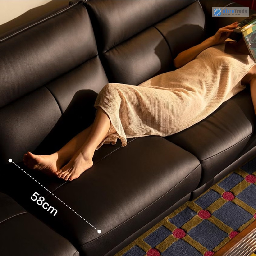 ![]() Идеальная поддержка Диван продуман до мелочей: широкое сиденье, мягкие подлокотники и анатомическая поддержка делают отдых по-настоящему комфортным. Глубина сиденья составляет 58 см — этого достаточно, чтобы с комфортом сидеть, поджав ноги. |