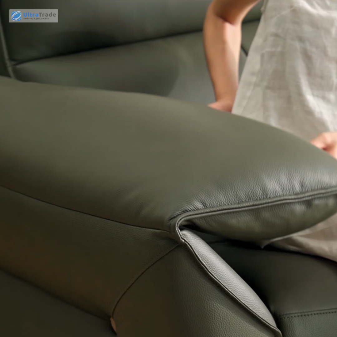 Регулировка наклона Диван поддерживает несколько углов наклона: 110°, 130°, 145° и 160°, что позволяет подобрать удобное положение для любых занятий — от чтения до полного расслабления. Управление осуществляется через две скрытые кнопки на боковой стороне. Они встроены в углубление, что сохраняет эстетичный внешний вид и предотвращает случайное нажатие детьми. Подлокотники расположены под углом 45°. Они мягкие и объемные, на них удобно опираться во время просмотра фильмов или чтения. Двухмоторная система обеспечивает независимое, синхронное и плавное перемещение спинки и сиденья без перекосов и рывков. |