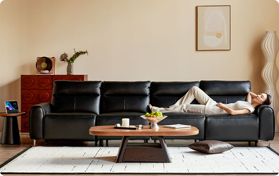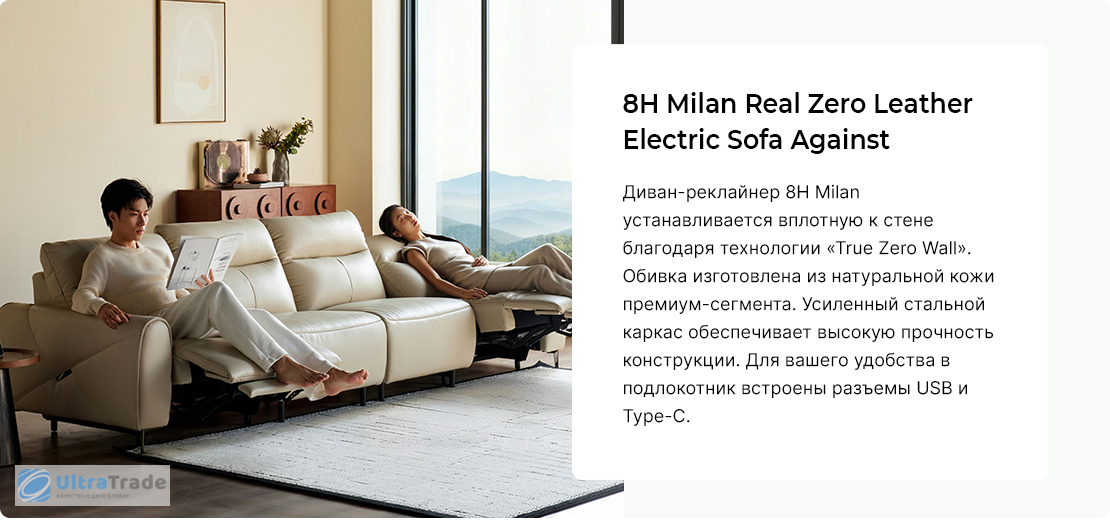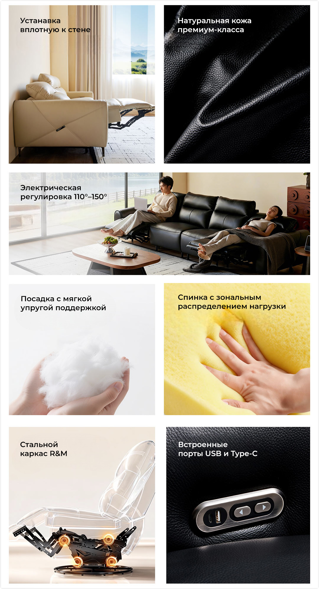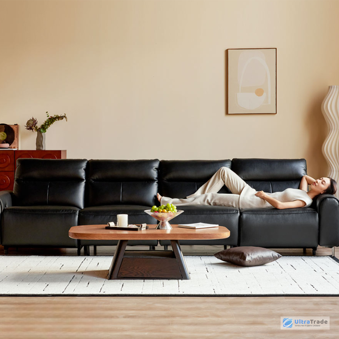 Диван-реклайнер на 4 места Xiaomi 8H Milan Real Zero Leather Electric Sofa Against The Wall 3400 mm Milan Black (B15)
