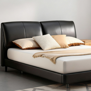 Тыльная сторона изголовья и обивка бокового каркаса выполнены из искусственной кожи.