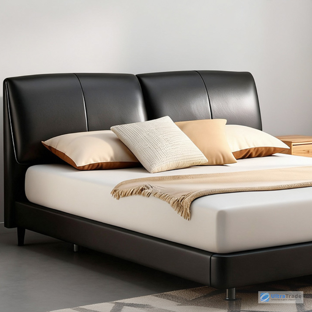 Тыльная сторона изголовья и обивка бокового каркаса выполнены из искусственной кожи.