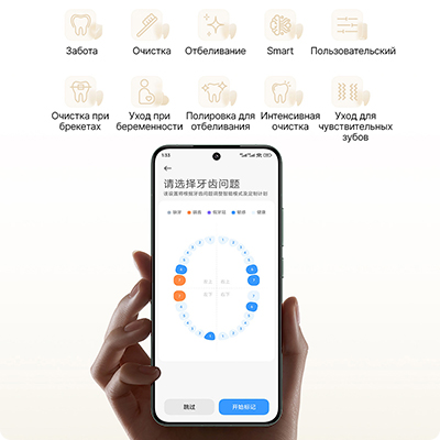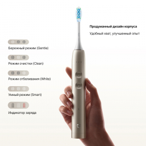 Режимы и интеллектуальный уход Щетка предлагает четыре основных режима: Бережный, Очистка, Отбеливание и Умный. В умном режиме система автоматически подбирает стратегию очистки под каждую зону. ![]() |