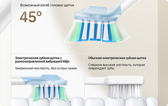 Технология Multi-Directional Sweeping для научной чистки Щетка оснащена уникальным мотором с двумя степенями свободы: горизонтальная пульсация + вертикальное выметание. Это позволяет точно воспроизвести траекторию Метода Басса, при котором щетка находится под углом 45° к оси зуба. Горизонтальная пульсация разрушает налет, а вертикальное выметание удаляет остатки пищи. Встроенный 6-осевой датчик автоматически определяет положение насадки и адаптирует режим очистки под разные зоны: десны, жевательную поверхность и внутреннюю сторону зубов. |