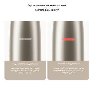 Умный контроль давления Встроенный электронный датчик давления отслеживает силу нажатия в реальном времени. При недостаточном или избыточном давлении индикатор мигает соответствующими цветами. При избыточном давлении автоматически снижается частота вибрации, защищая десны и эмаль от повреждений. ![]() |