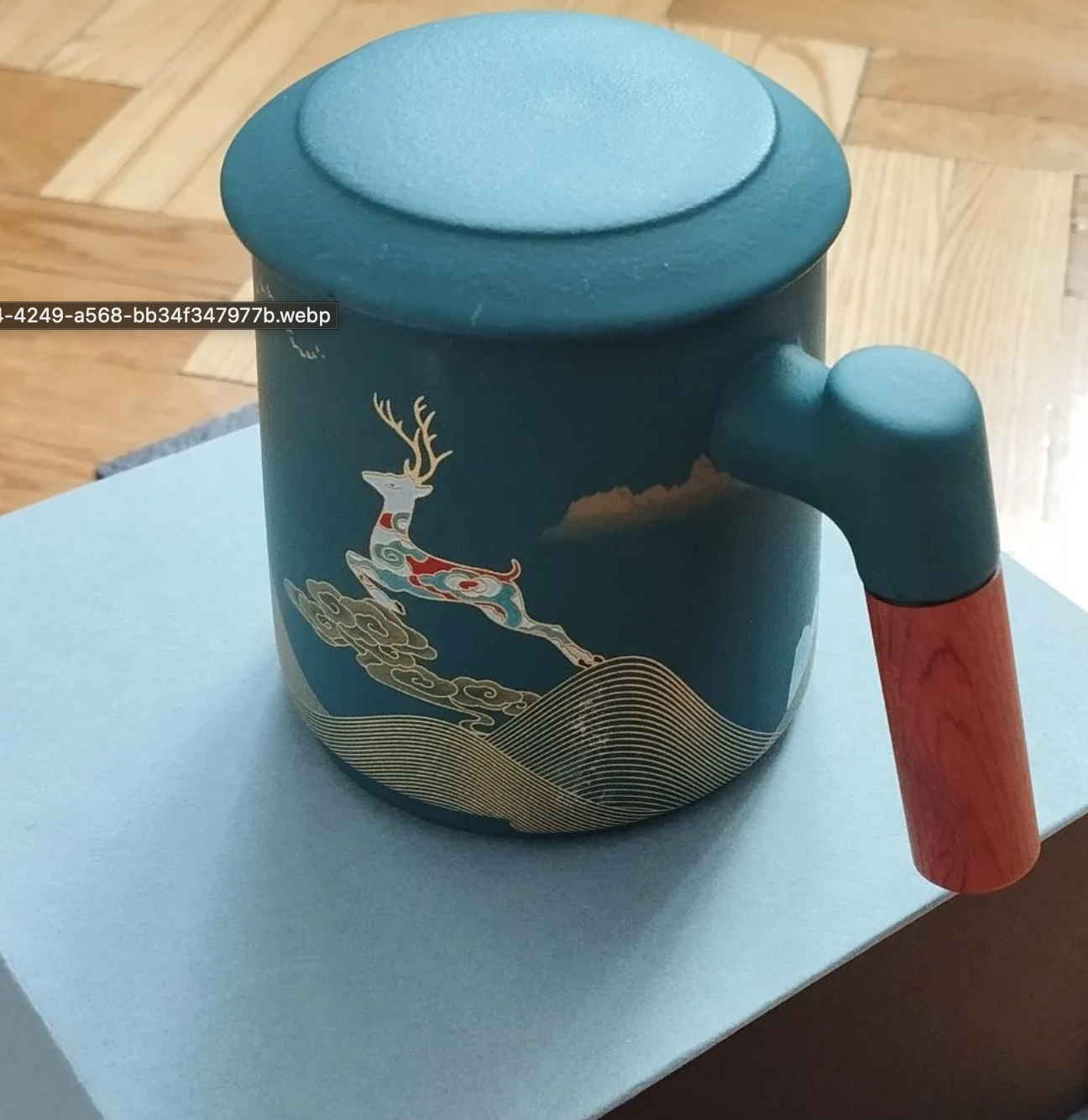 Каждая чашка упакована в стильную подарочную коробку, окрашенную в спокойный серо-голубой цвет.