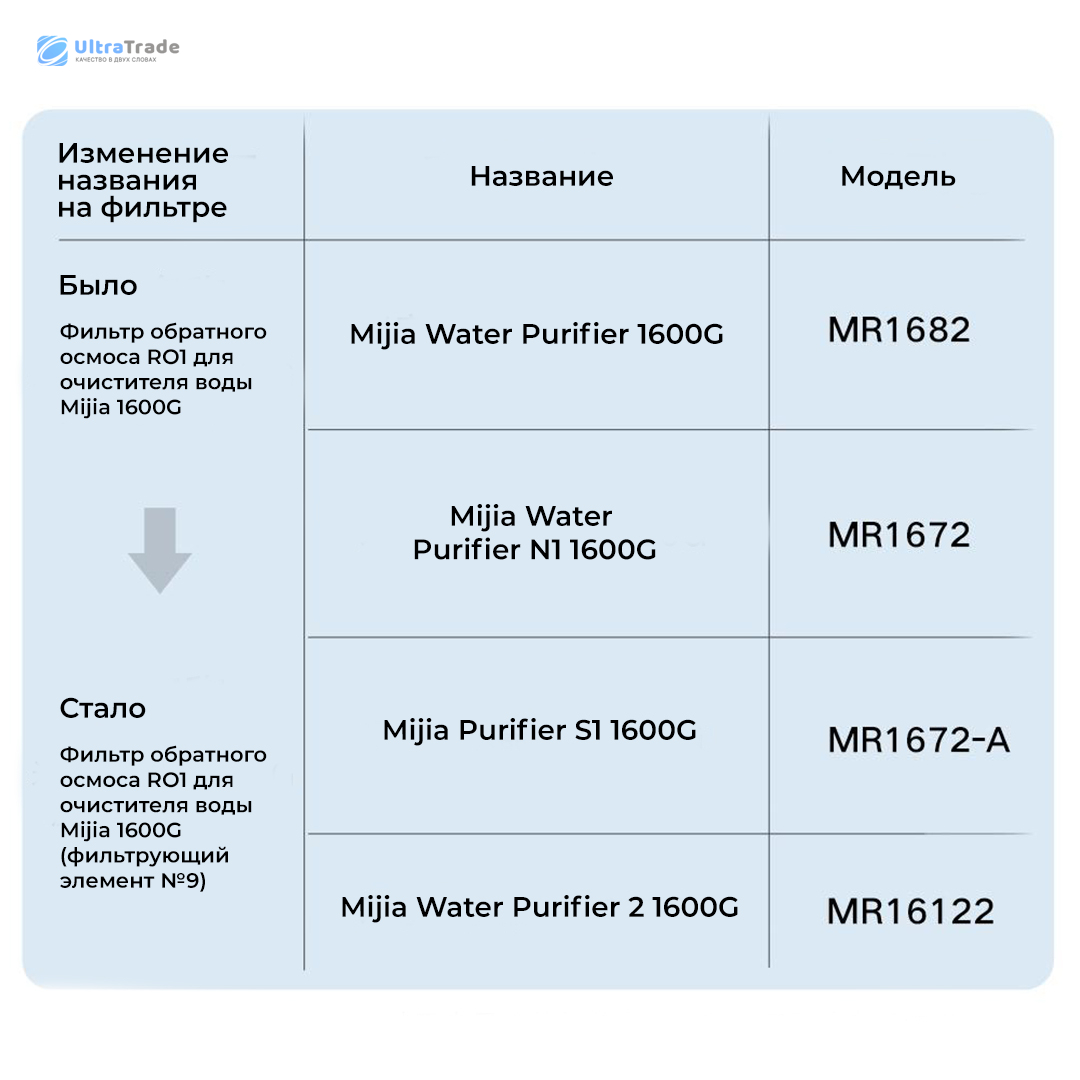 Фильтр RO обратного осмоса Xiaomi Mijia Water Purifier 1600G Series Filter Element (YM4013-1600G) (MR1682)