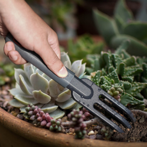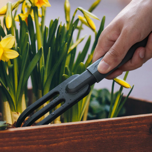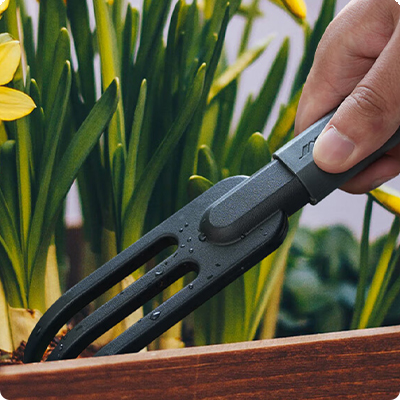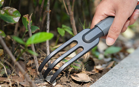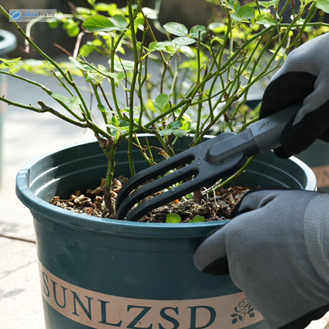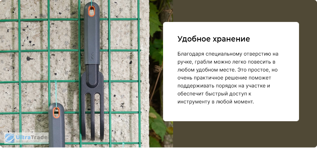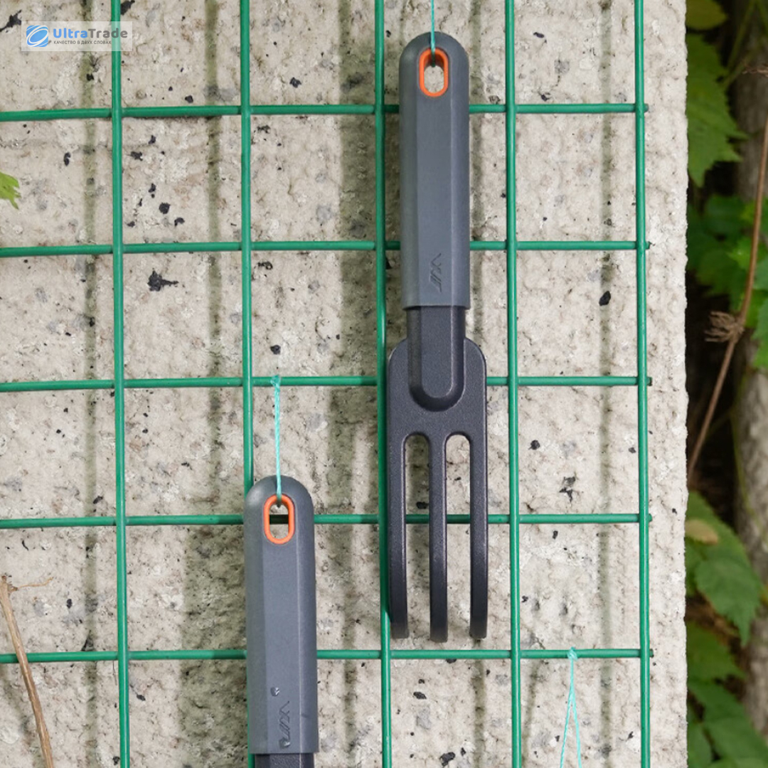 Зубцы Три прочных зубца легко разрыхляют землю, удаляют комки и придают поверхности аккуратный вид. Подходят для подготовки почвы перед посадкой и уборки после работ. ![]() |