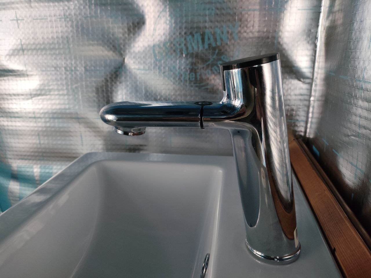 Кран сам по себе маркий следы остаются в обеих версиях (цвета). Отдельная физическая кнопка подачи пены. Можно регулировать температуру подаваемой воды и напор (поставил минимальный).