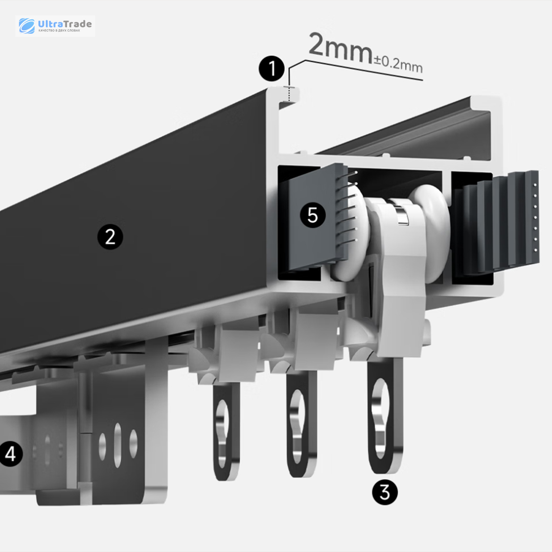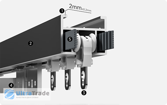Конструкция рассчитана на точность: толщина профиля 2 мм ±0,2 мм, что гарантирует идеальное совпадение всех элементов и плавное движение штор.