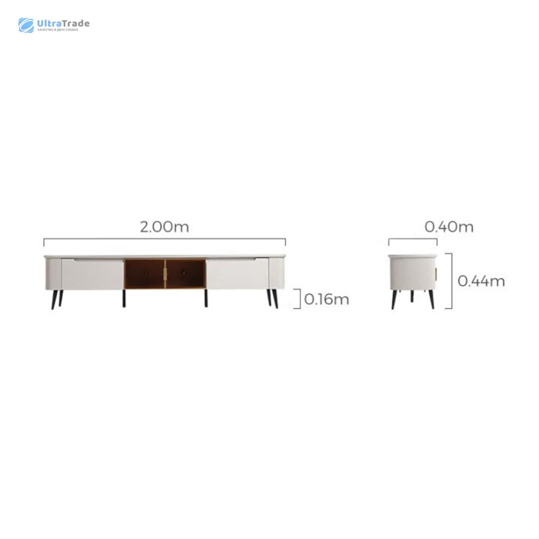 ![]() Тумба Тумба под телевизор выполнена в том же стиле, обладает закругленными углами, ребристой поверхностью и столешницей из сланца. |