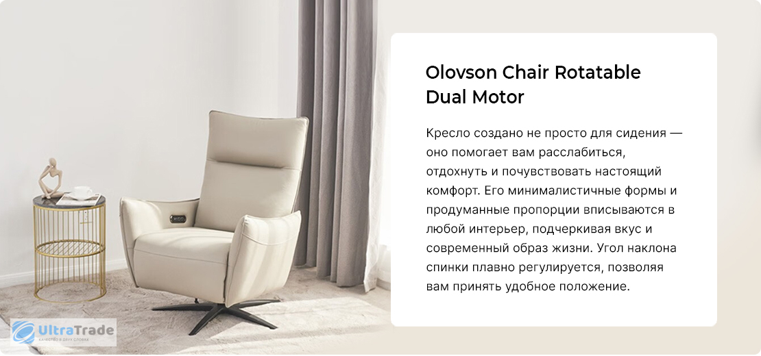 Эргономика для всего тела Кресло разработано с учётом принципов эргономики — его электропривод регулирует угол наклона спинки и подставки для ног, чтобы снять напряжение с позвоночника и мышц после долгого дня. Кресло наполнено высокоэластичным поролоном, который мягко обволакивает тело, повторяя его контуры и создавая ощущение уюта. Благодаря отличной воздухопроницаемости и упругости оно долго сохраняет форму — даже после долгого использования вы будете чувствовать ту же мягкость и поддержку. |
