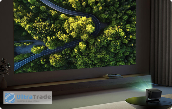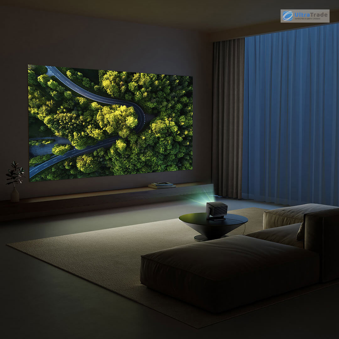 Проектор оснащён трёхцветным лазером, который делает картинку максимально яркой, контрастной и насыщенной. Технология позволяет добиться реалистичных оттенков и глубоких чёрных цветов, а поддержка 4K гарантирует детализацию до мельчайших элементов.
