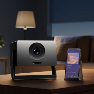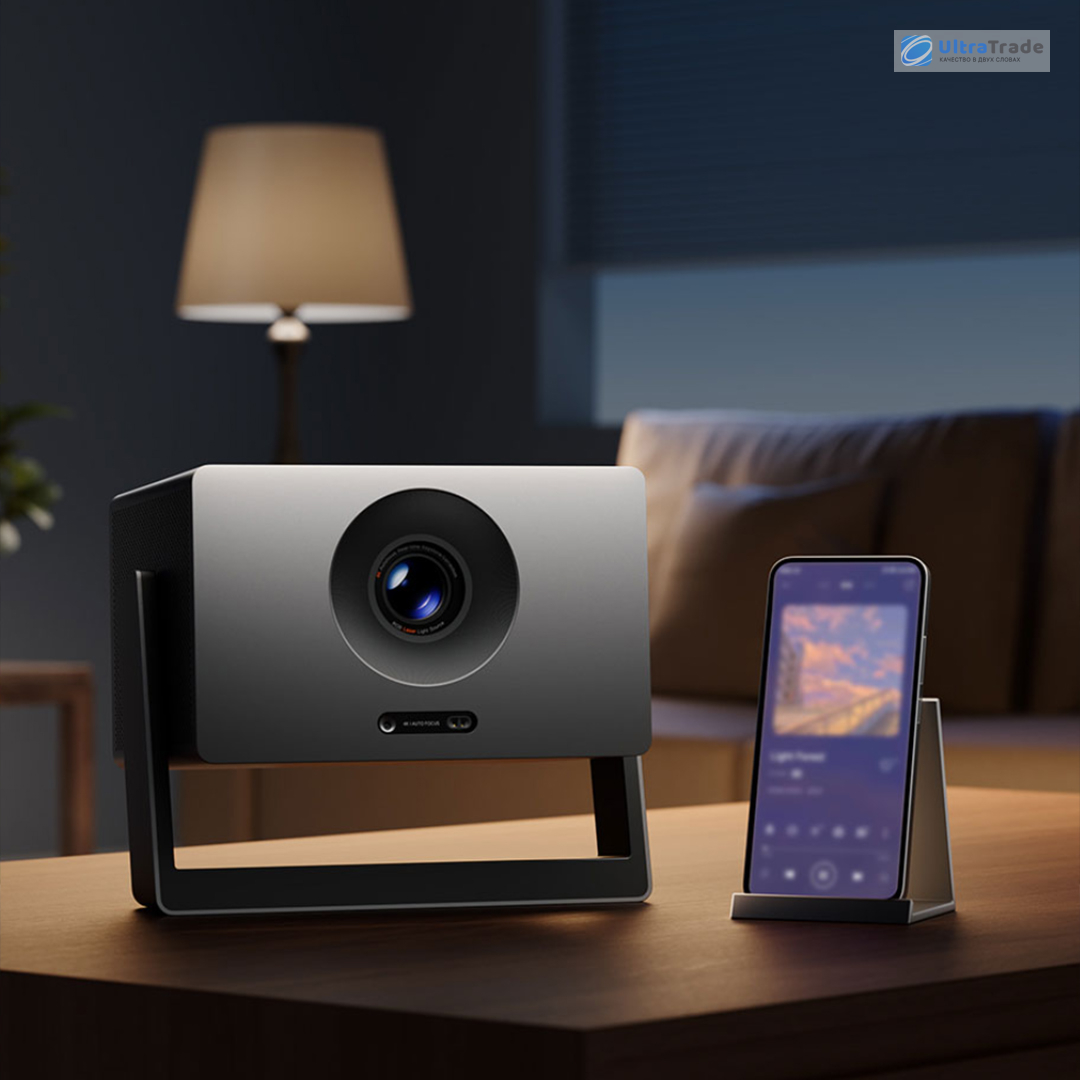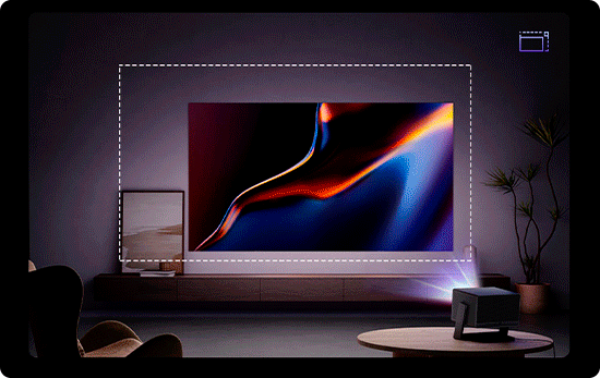 Проектор автоматически настраивает четкость и выравнивает изображение в реальном времени при перемещении. Система интеллектуального кадрирования распознает границы экрана и точно подгоняет картинку.