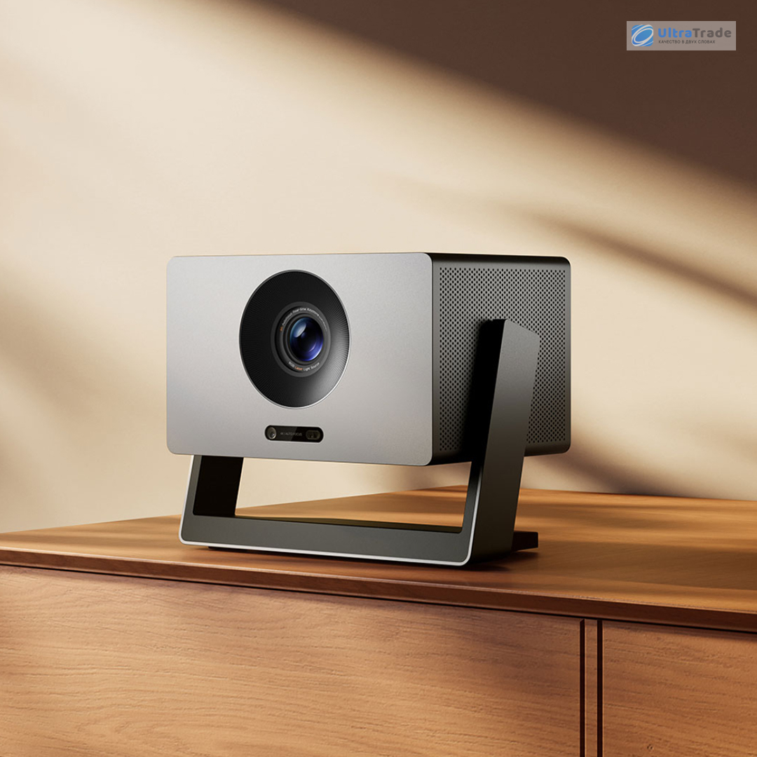 Модель использует целостную конструкцию, в которой проектор и поворотный механизм объединены. Угол проекции достигает 130°, что позволяет легко выводить изображение на потолок или стену без ограничений по месту установки.