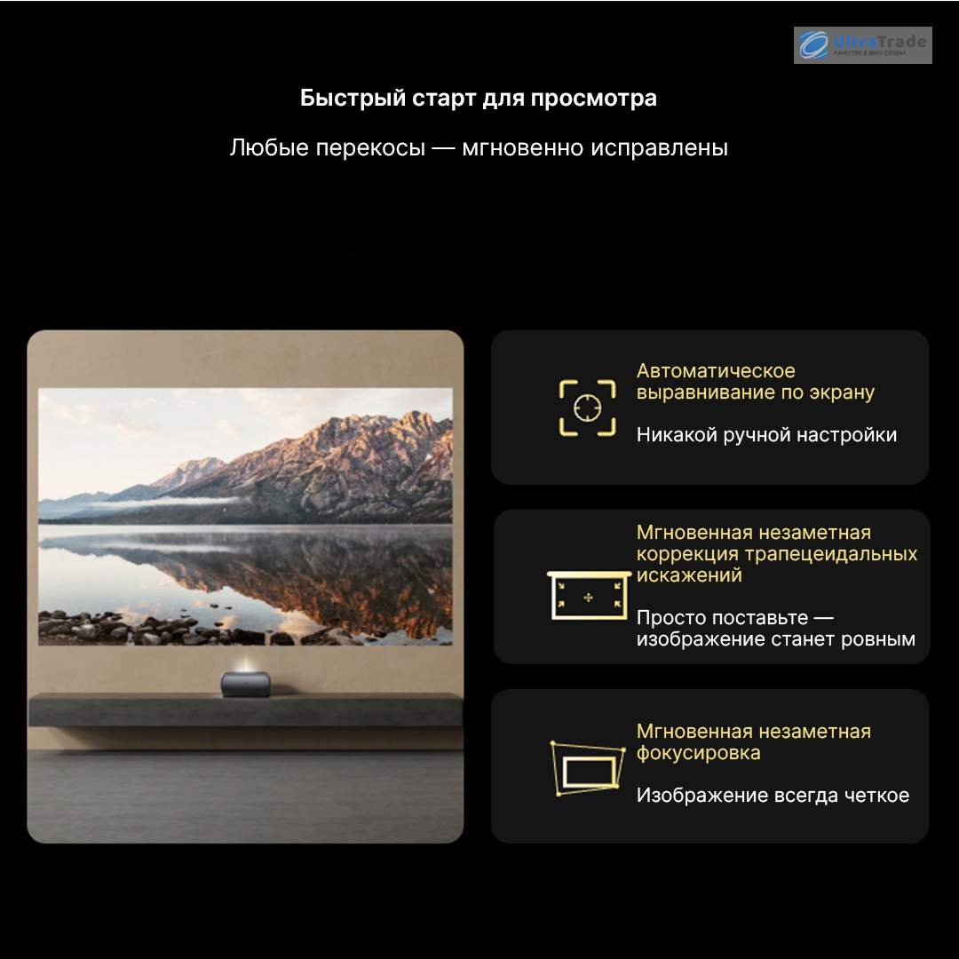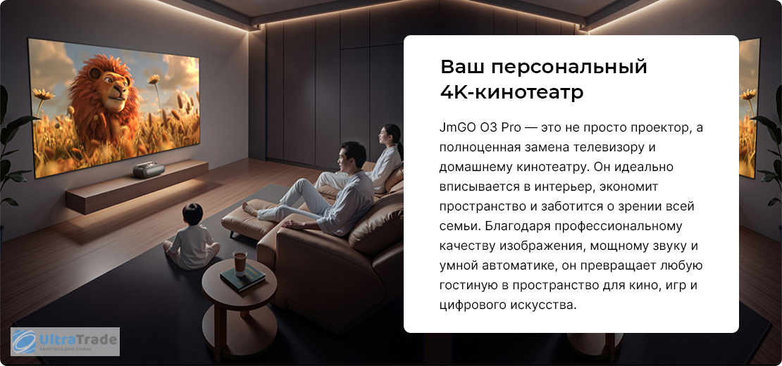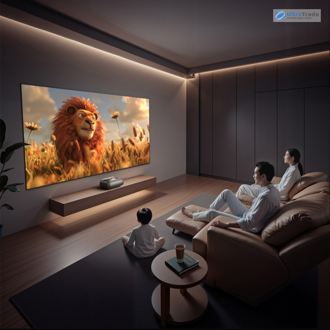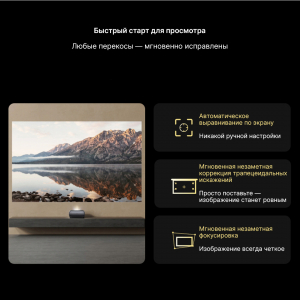 Умная автоматика и адаптация под пользователя Проектор думает за вас. Достаточно поставить его на тумбу — и проектор сам выровняет изображение, сфокусирует картинку и уберёт искажения, даже если установка не идеальна. Благодаря электромеханическому микроподвесу высота проекции регулируется на лету — от 0 до 10 см, — чтобы центр экрана всегда находился на уровне ваших глаз, независимо от мебели. Если человек случайно подойдёт слишком близко к лучу, система мгновенно приглушит яркость, защищая зрение. А встроенная адаптация к освещению в комнате автоматически подстраивает яркость и контраст, чтобы картинка оставалась комфортной — и днём, и вечером. |