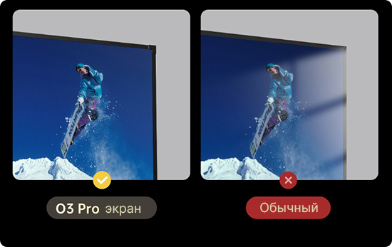 Профессиональное изображение на базе чистого лазера JmGO O3 Pro использует настоящий трехцветный лазер — без люминофоров, белых LED и компромиссов. Такой источник света воспроизводит цвета так, как их задумал режиссёр: насыщенно, точно и живо. Благодаря этому проектор охватывает невероятно широкую цветовую гамму и передаёт миллиарды оттенков без искажений. Важно и то, что лазер полностью обходит вредный синий спектр, который утомляет глаза, — это аппаратная защита зрения, а не просто фильтр. Изображение формируется отражённым светом, как при чтении книги, поэтому даже многочасовой просмотр не вызывает усталости. В комплекте — специальный антибликовый экран Френеля, который гасит блики от окон и ламп, делая картинку чёткой и контрастной в любое время дня — без необходимости закрывать шторы. |