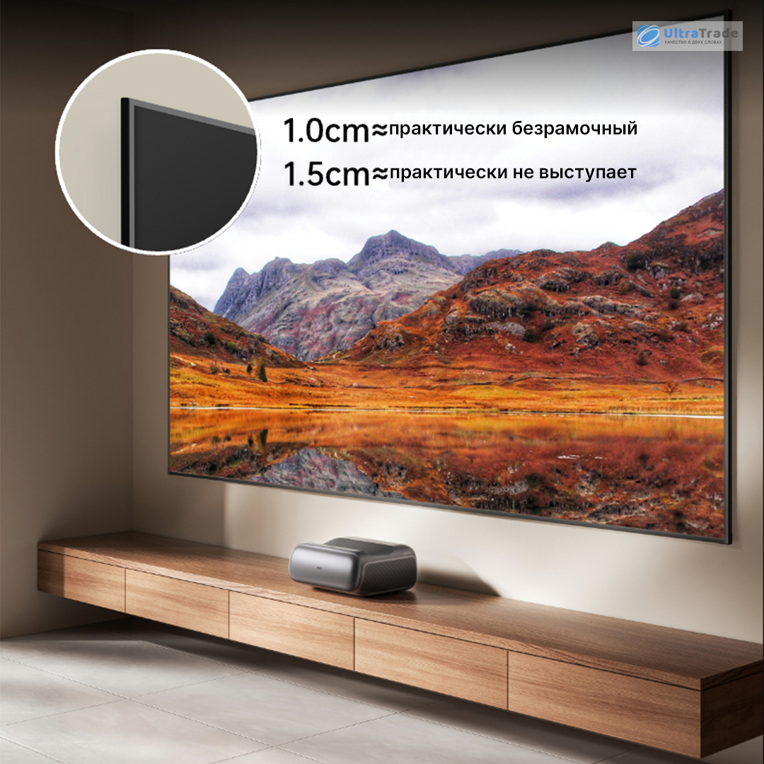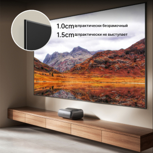 ![]() Без рамок Экран выполнен в стиле «невидимой границы»: ширина рамки составляет всего около 10 мм, а толщина панели — 15 мм. Он плотно прилегает к стене и визуально сливается с ней, создавая эффект парящей картинки. Такой дизайн не перегружает интерьер. |