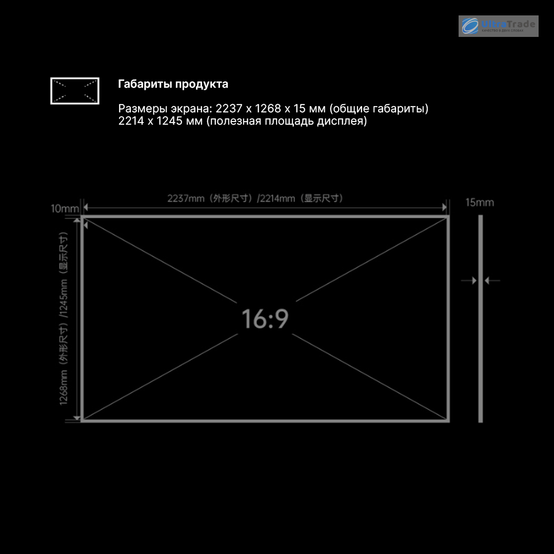 | Размеры экрана (внешние): | 2238 × 1269 × 19 мм |