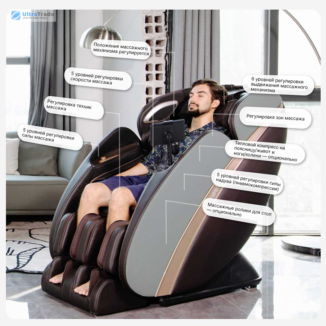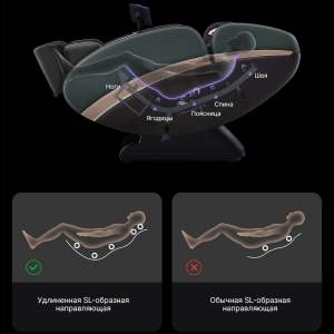 SL-направляющая Сверхдлинная направляющая длиной 131 см повторяет естественные изгибы тела от шеи до бёдер, увеличивая площадь массажа на 70% по сравнению с обычными креслами. Массажные головки плавно скользят вдоль позвоночника, автоматически регулируя силу. ![]() |