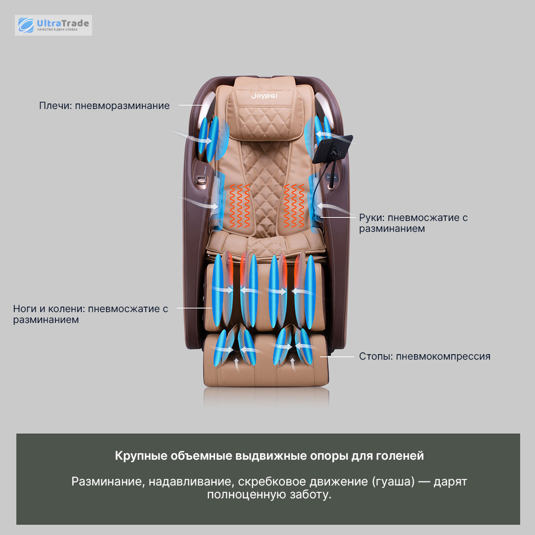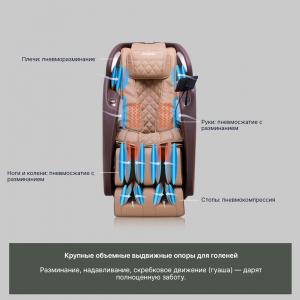 Объёмная пневмосистема Многослойные воздушные подушки мягко обволакивают плечи, руки, поясницу, бёдра, голени и стопы, создавая эффект 360°-обёртывания. Волнообразное сжатие имитирует ручное разминание, эффективно снимая стресс и усталость. Подушки адаптируются под форму тела. ![]() |
