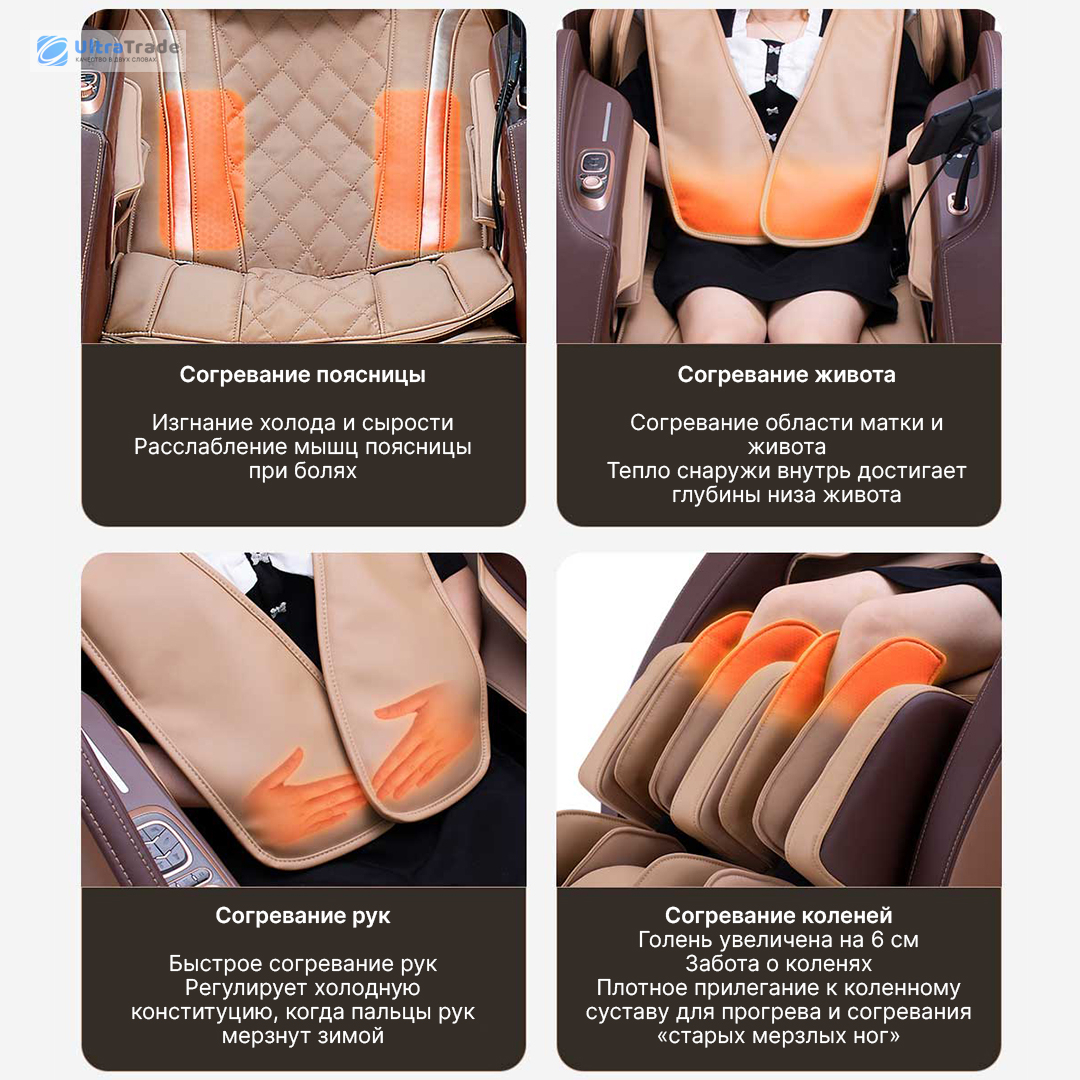 ![]() Карбоновый обогрев Передовые карбоновые нагреватели создают постоянную температуру 45°C в зонах поясницы, живота, рук и коленей. Тепло распространяется кольцеобразно, проникая глубоко в мышцы, снимая спазмы и улучшая кровообращение. |
