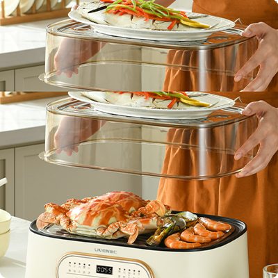 Вместительные ярусы Пароварка создана для тех, кто хочет питаться разнообразно и с пользой, но не тратить часы у плиты. Утром — полезный завтрак, днем — сытный обед, вечером — легкий ужин на пару: прибор справится с любым сценарием благодаря продуманной конструкции. Вместительные ярусы позволяют готовить действительно много: например, за один раз можно разместить до 16 небольших котлет. А если вы любите рыбу, вам понравится, что в пароварку помещается целая тушка — хвост и голова обрезать не придется. Пока наверху готовится второе, в нижней 5-литровой чаше можно варить суп или кашу. Прозрачные стенки дают полный контроль над процессом, а автоматическое отключение при нехватке воды избавляет от необходимости постоянно находиться рядом. |