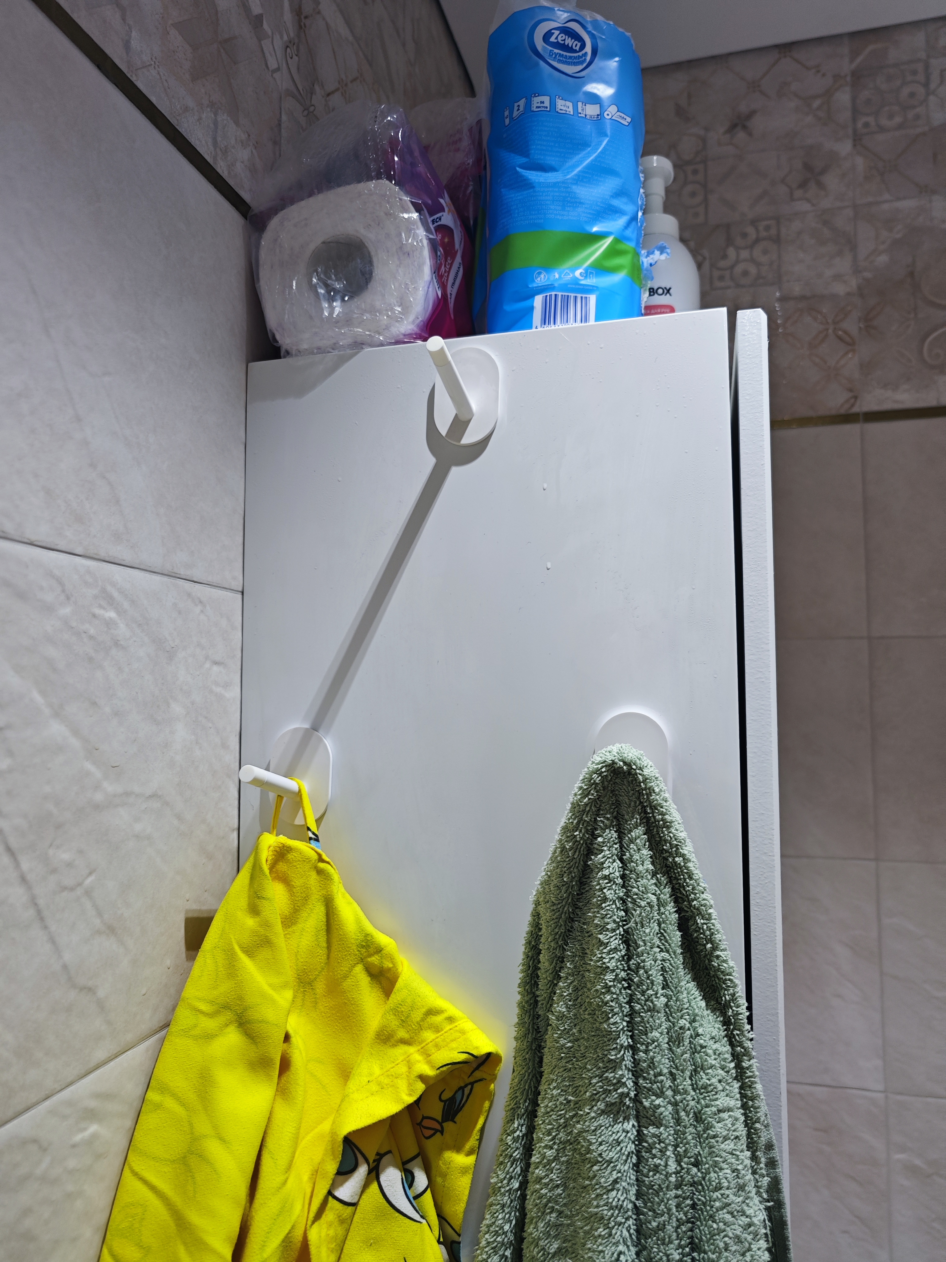Сложно сделать хорошее описание на крючки. Но за время использования они не сломались, не поменяли цвет. Заводской скотч очень надежный,главное обезжирить поверхность.