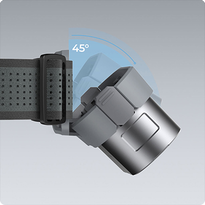 Регулируемый фонарь Головная часть фонаря легко наклоняется на угол до 45° вверх или вниз. Это позволяет точно направить луч света именно туда, куда нужно. Налобная лента со светоотражающими полосами обеспечивает комфортную посадку. Она хорошо пропускает воздух и впитывает влагу. ![]() |