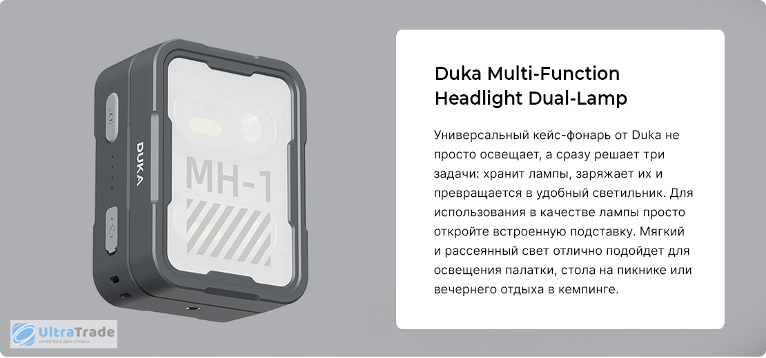 Многофункциональный походной фонарь Xiaomi Duka Multi-Function Headlight Dual-Lamp Charging Kit (MH1)
